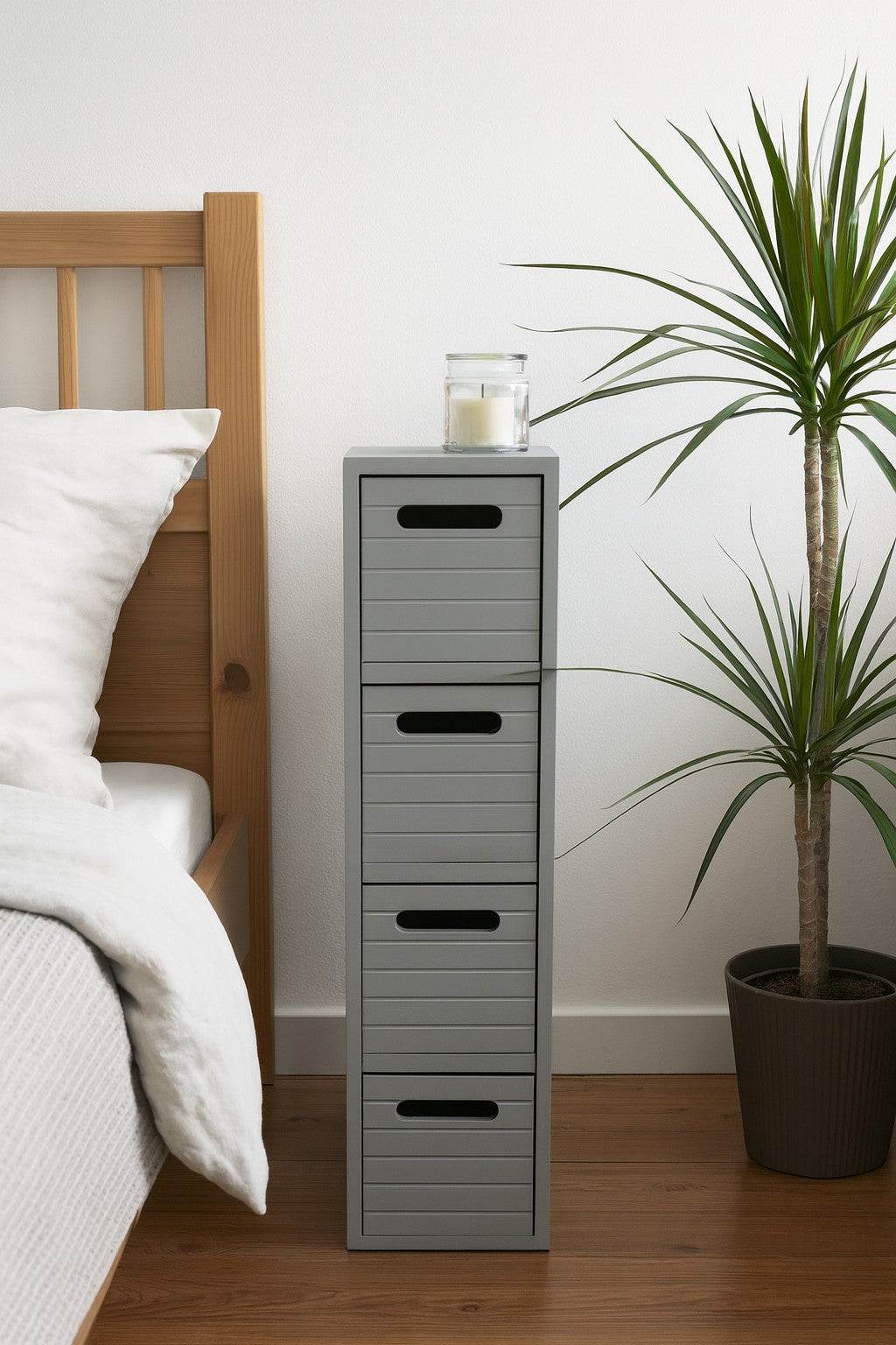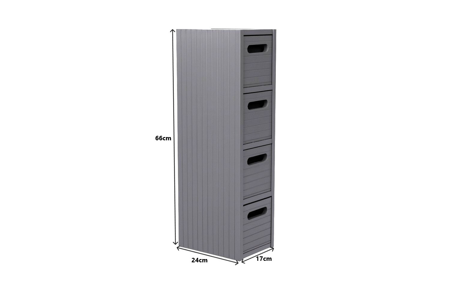 Grey 4 drawer unit is free standing and slimline to suit smaller bathroom or any room. It has a Grey painted finish to add a contemporary touch to any room settings.